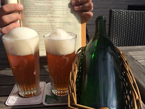 One of my favorite memories of Belgium and our honeymoon revolves around a lambic basket and a bottle of beer. When Emily and I were eating lunch at 3 Fonteinen, Armand walked by and I nervously told him we loved his beer. We told him it was our honeymoon and he went to his cellar and brought back a bottle of 2008 Vintage Oude Geuze for us as a gift. He was personally very happy, having just completed a major business milestone and wanted to share his happiness with us as well. He said it was the same bottle he had just celebrated with. Later, when we were buying bottles next door, Lydie was ringing up our bottles and we shared again that it was our honeymoon and she gave us a lambic basket to go with Armand’s gift. It was an amazing visit in Beersel.